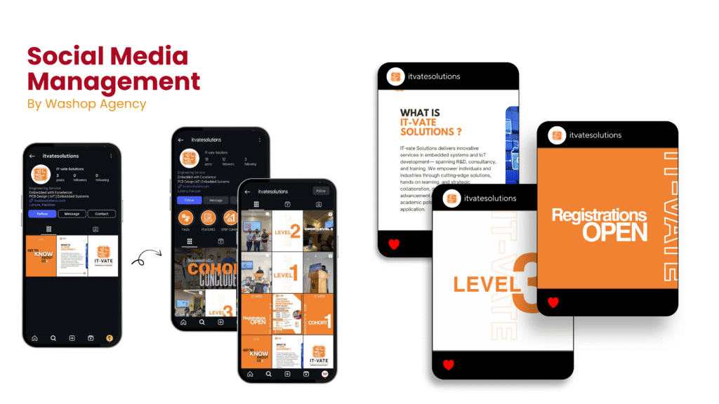 IT-Vate Solutions, initially focused on Embedded Systems Development and IoT Development, approached Washop when they planned to launch their first training program. Our team developed their complete digital presence, ensuring their brand was positioned effectively to attract the right audience. From branding and design to social media management and digital marketing, we built a strong online foundation to support the success of their training initiative